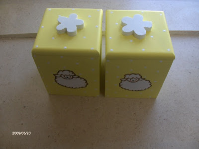 Mais dois trabalhinhos que fiz totalmente pintados à mão, e que dão muito jeito para guardar os pertences do bebé.
