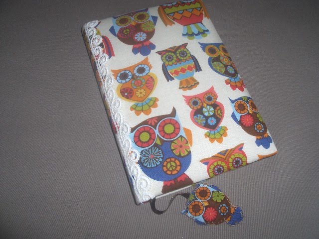 E esta é a minha agenda para 2011, adoro este tecido e para dar alguma graça apliquei-lhe uma renda e costurei um mocho no separador. Gostei deste resultado.... Beijinhos a todas