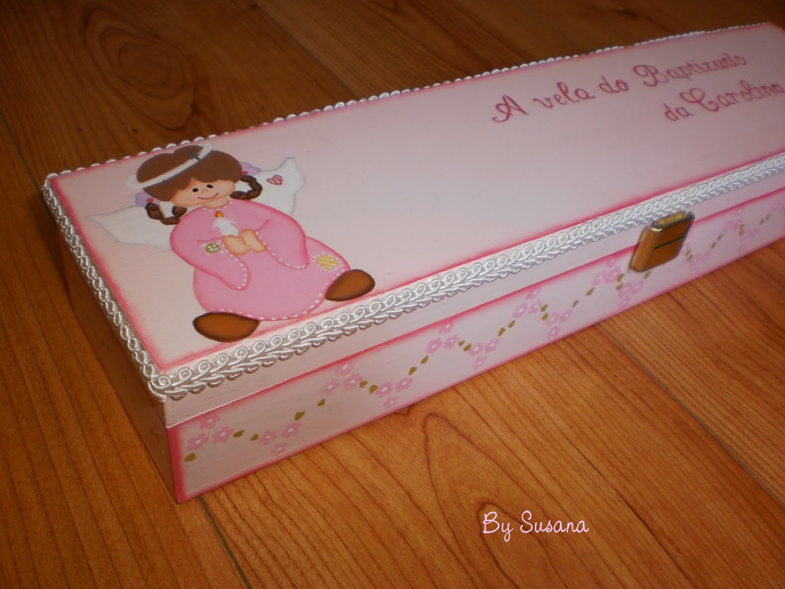 Foram-me pedidas duas caixas para velas de Baptismo que fossem diferentes, para ofertar duas primas que se baptizaram neste Domingo.